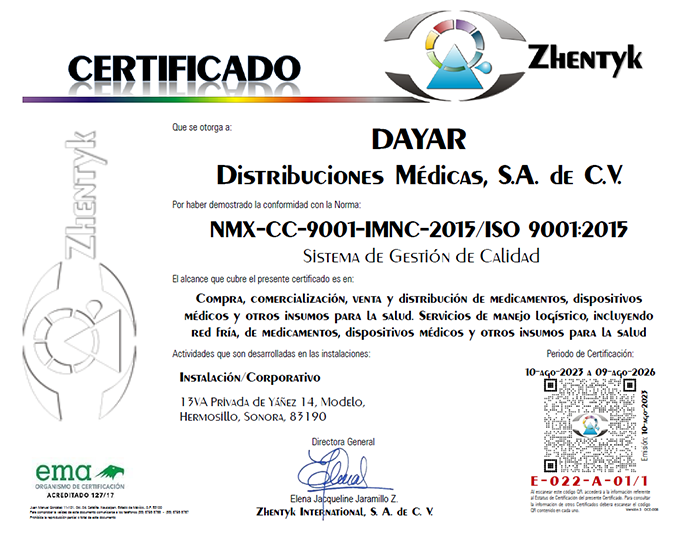 DAYAR cuenta con la certificación ISO 9001:2015, lo que garantiza un Sistema de Gestión de Calidad (SGC) sólido, eficiente y en cumplimiento con los más altos estándares.